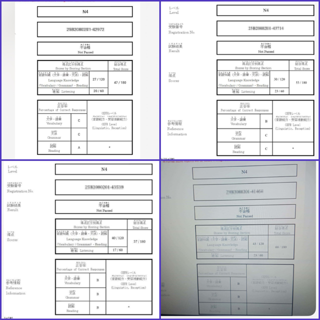 が・・・残念ながら全員不合格(180点中47点、53点、57点、66点)